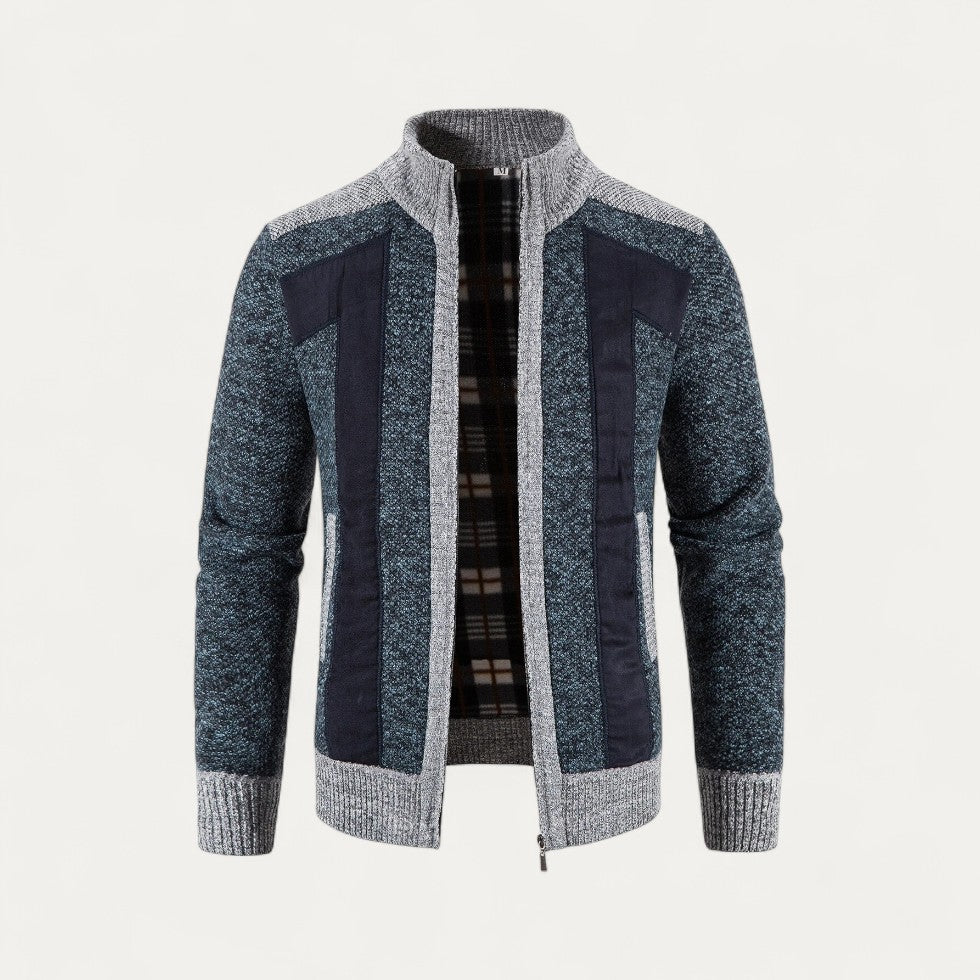 Cotton Blend Knitted Zip Up Cardigan Jacket for Men