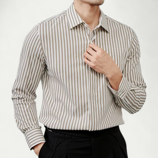 Make your day feel effortlessly composed with a shirt that strikes the right balance between structured and laid-back. Whether you're navigating a busy office, heading out for coffee, or catching up with friends, this striped long sleeve shirt offers a polished yet approachable feel.