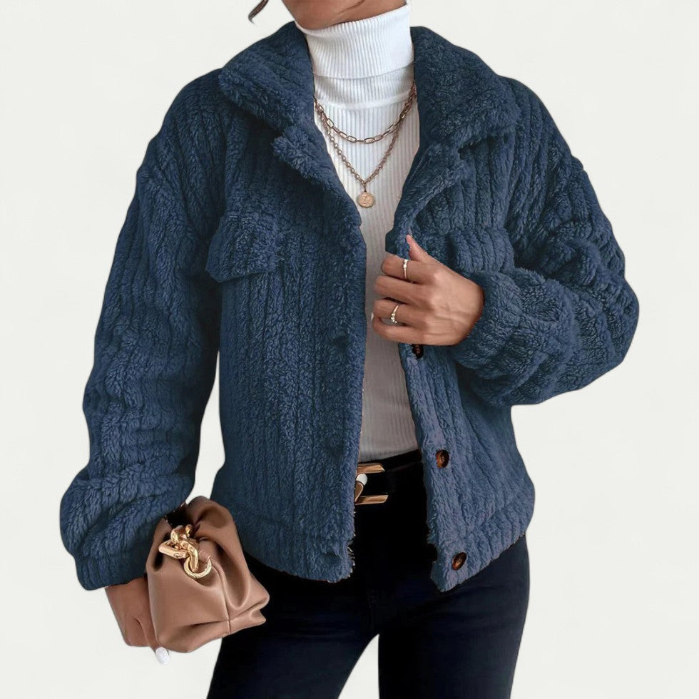 Wrap yourself in effortless comfort with this teddy fleece button-up jacket. Perfect for layering over casual outfits, it combines soft texture with a structured design that keeps your look sharp yet relaxed. Whether you’re stepping out for coffee or strolling through the city, this piece balances warmth, style, and versatility in one wear. Its elevated detail makes it feel like something straight out of a Parisian winter wardrobe.